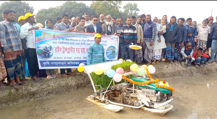 রাইস ট্রান্সপ্ল্যান্টার মেশিনে ধান রোপণ কার্যক্রম উদ্বোধনী অনুষ্ঠানে সভাপতিত্ব করেন সহকারি কমিশনার (ভূমি) কৃষ্ণচন্দ্র